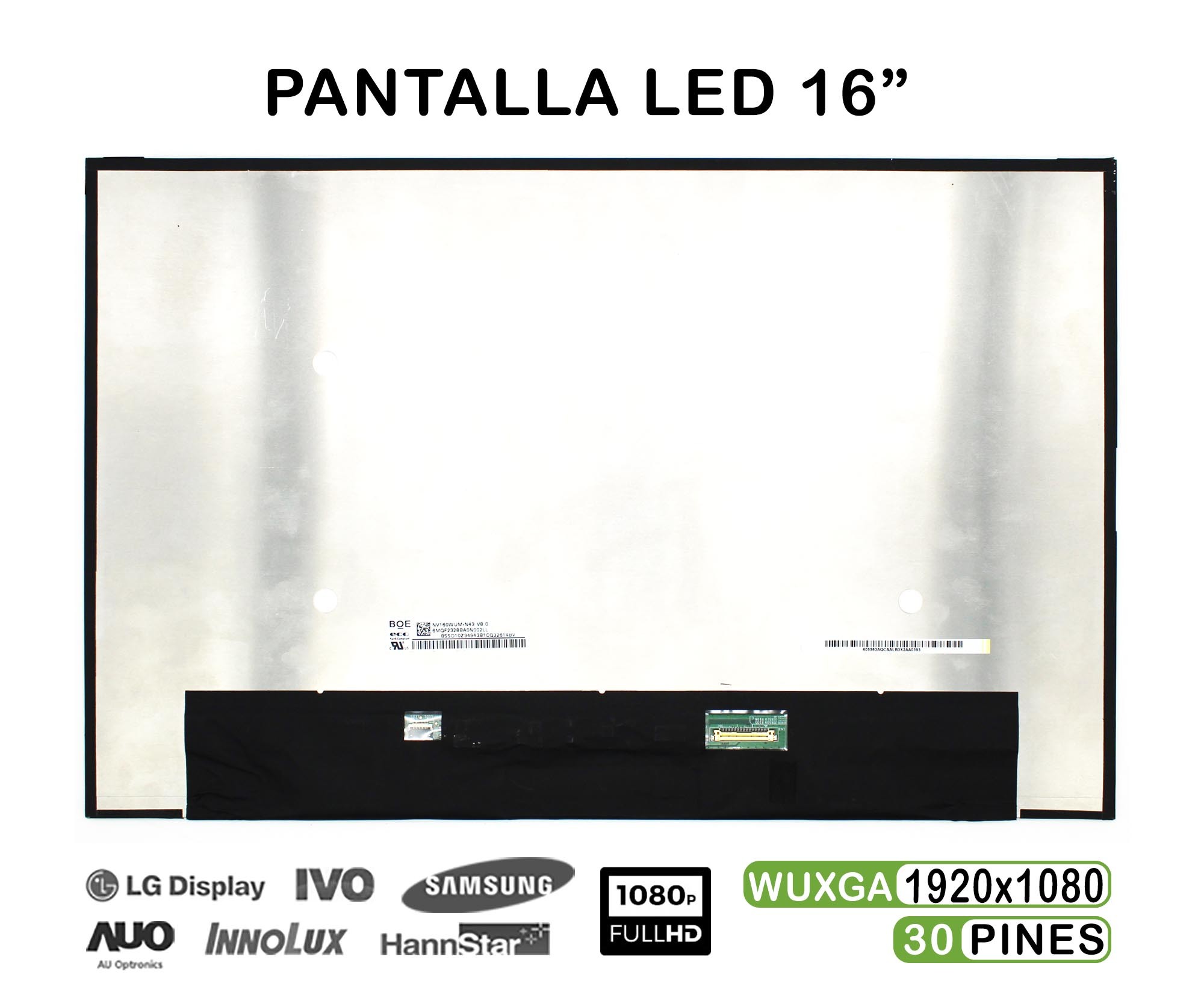 LP160WU1-SPF1, NV160WUM-N43 V8.0, NV160WUM-N41 V8.1, NE160WUM-N62, B160UAN03.0, B160UAN03.1, B160UAN03.2, MNG007QS1-3, N160JCA-EEL, N160JCA-EEK